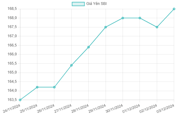 Tỷ giá Yên SBI, DCOM hôm nay 1 JPY bằng 168,5 VNĐ